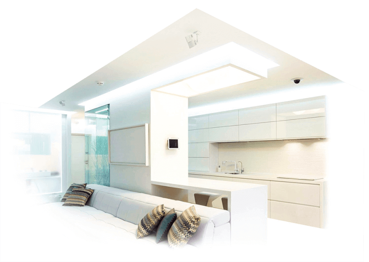 Натяжные потолки дают большой простор для освещения комнаты. Здесь вы можете поставить как обычную люстру, так и точечное освещение в любой конфигурации. Для установки «точек» специалисты монтируют специальные стаканы, в которых и находится лампочка. Единственное предостережение — нужно использовать качественную проводку и патроны, ведь в случае короткого замыкания, пленка вокруг стаканов может оплавиться.